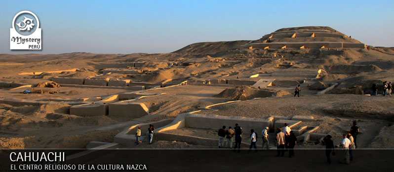 Cahuachi vivió su época de esplendor entre el año 1 y el 750, y estaba situado en el valle del río Nazca, y cerca de las Líneas de Nazca. Su nombre significa lugar donde viven los videntes. Sus habitantes permanentes eran pocos y vivían de la agricultura, pero era un centro de peregrinaje cuya población crecía en las fechas de acontecimientos ceremoniales importantes, acontecimientos que implicaron probablemente las Líneas de Nazca.