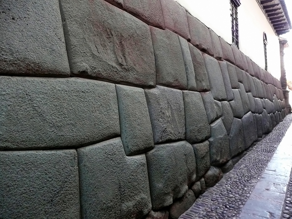 En la ciudad de Cuzco encontramos muros construidos con enormes bloques de piedra, totalmente asimétricas, con curvas, ángulos y puntas. Lo asombroso de este trabajo es que las rocas encajan perfectamente entre sí para conformar una pared maciza y homogénea sin la menor fisura, y sin la necesidad de uso de ningún mortero.