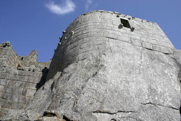 Una ventana ofrece la vista de la salida del sol en el solsticio de junio y de la constelación de las Pléyades. Debajo del templo hay una cueva conocida como la Tumba Real, con el más espléndido trabajo de piedra: combinaciones de un solo bloque tallado con múltiples rocas poligonales torsionadas se amalgaman a la perfección.