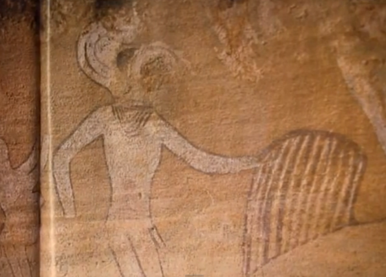 Su aspecto con la cabeza afeitada y con lo que parece un traje de una sola pieza (con cuello en «V») tiene poco del estereotipo de un hombre del neolítico. Posee más bien una semblante futurista, muy parecido a una de las pinturas rupestres de Tassili n’Ajjer.