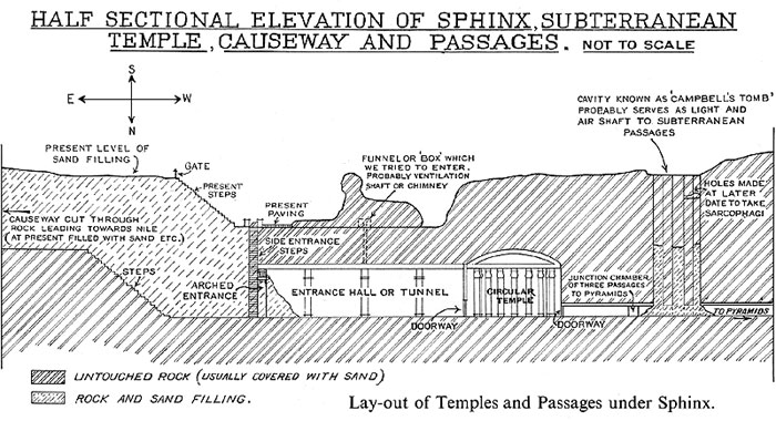 Más recientemente, en 1991 el sismógrafo Dr. Thomas Dobecki descubre, realizando pruebas acústicas alrededor de la Esfinge, una gran anomalía de forma rectangular bajo su pata derecha de 9 x 12 x 5 metros de profundidad, descartando por su geometría la posibilidad de que se trate de una cavidad natural. En 1997, Dobecki junto al Dr. Schor, usando un escáner confirman la existencia no sólo de la cámara subterránea sino también de un probable túnel que va directo hacia la segunda Pirámide. Lamentablemente el gobierno egipcio no autorizó a excavar en estos lugares como en otros tantos sitios donde se confirmó la presencia de distintas cámaras y túneles.