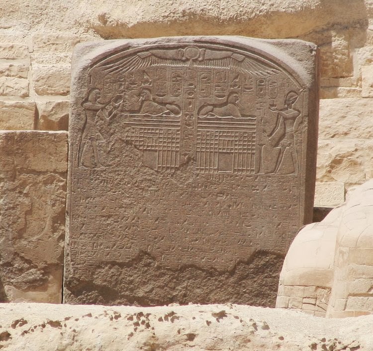 Entre las patas delanteras de la Gran Esfinge de Giza se encuentra una estela de granito de 3,6 metros de altura y 15 toneladas de peso conocida como la Estela del Sueño.