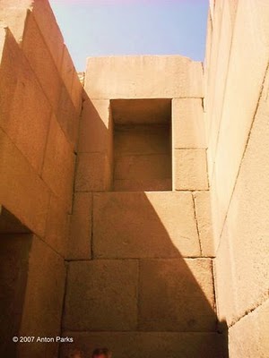 Es asombroso observar pasillos de muros construidos con rocas irregulares (como las vistas en las pirámides) de forma simétrica entre muros opuestos. Es impensable que esto sea mérito del azar, sino que se trata evidentemente de una obra claramente preconcebida, en un total logro de diseño y construcción.
