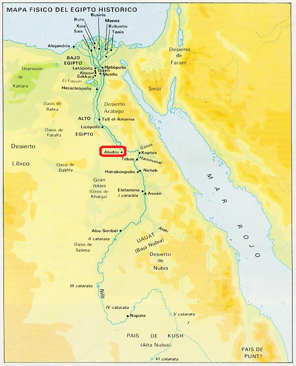 Abidos (Abedyu) se trató de uno de los centros más influyentes del Alto Egipto. Fue la ciudad de los gobernantes del periodo protodinástico, donde se han emplazado asentamientos, templos y tumbas.