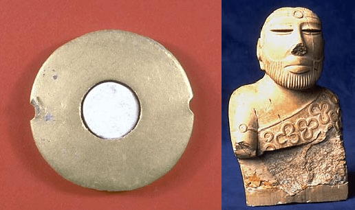 También se ha hallado una estatuilla denominada “Rey-Sacerdote” que tiene la representación de una suerte de “vincha” con un espacio circular en el centro de la frente, en el cual cabría un pequeño disco de oro (encontrado cerca de la estatuilla) y que sugiere un posible precursor del ‘Tercer Ojo“.