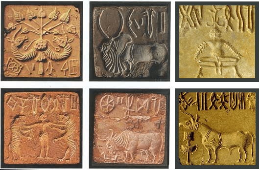 El sello Pashupati tiene la imagen de una figura sentada, posiblemente itifálica, con las piernas cruzadas y rodeada de animales. La figura ha sido interpretada por algunos eruditos como un yogui y por otros como un «proto- Shiva» de tres cabezas como «Señor de los animales».