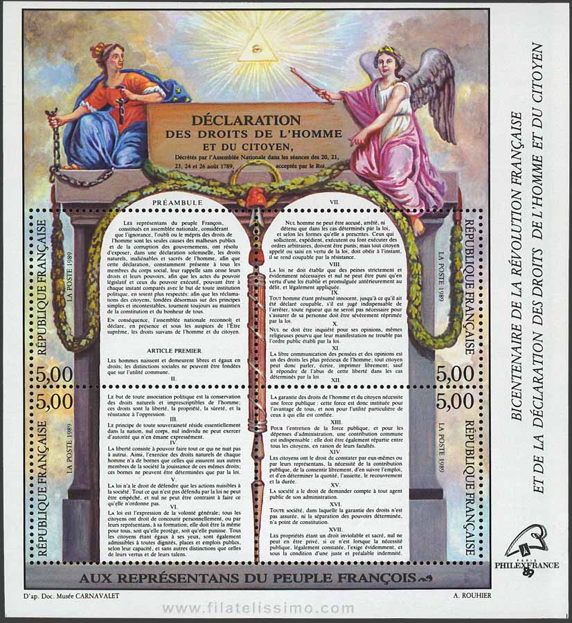Bicentenario de la Revolución Francesa: Estampilla de la declaración de los derechos del hombre y del ciudadano