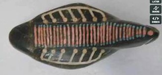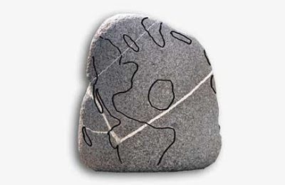 Se trata del artefacto más desconcertante del grupo. Esta piedra de 60 cm de alto 40 de ancho y 30 de profundidad, con líneas talladas y piedras incrustadas, podría tratarse del mapa más antiguo conocido hasta la fecha, una representación global del Pleistoceno.