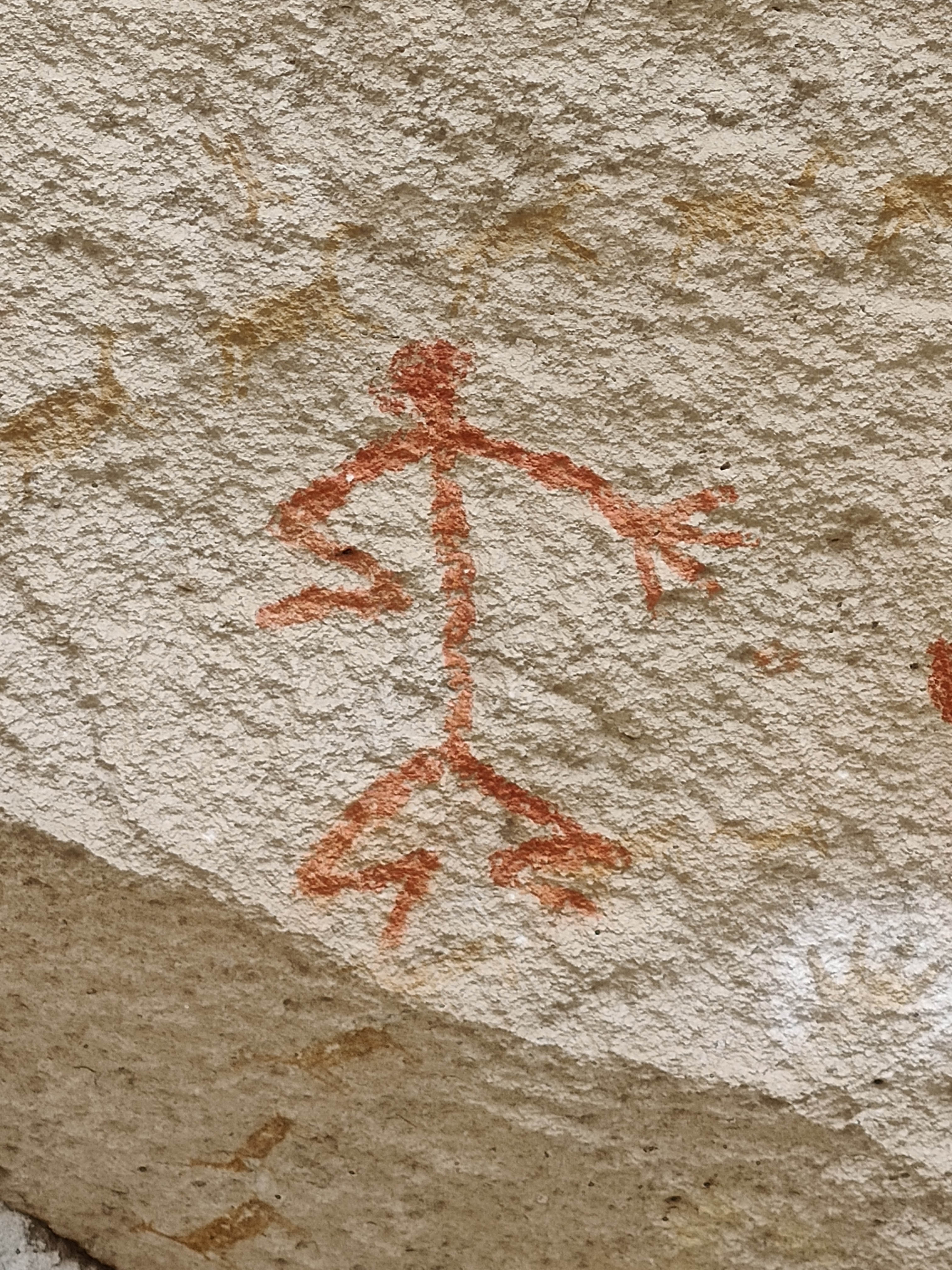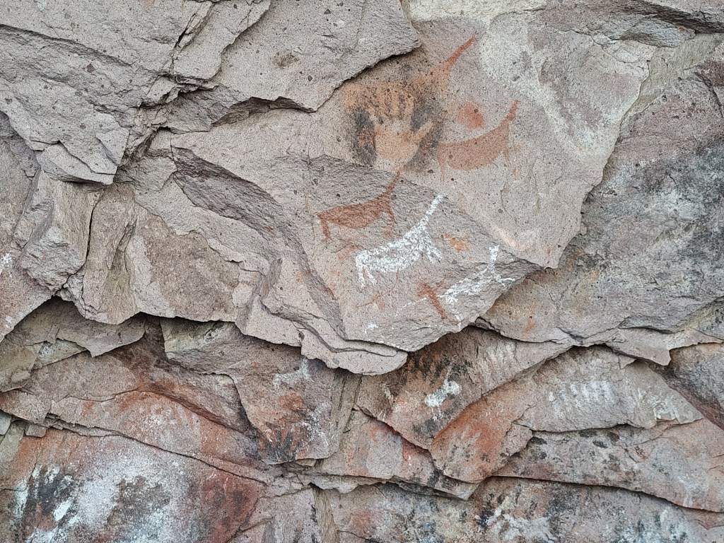 También hay representaciones de escenas de caza, principalmente de guanacos, así como figuras humanas, símbolos abstractos y geométricos.