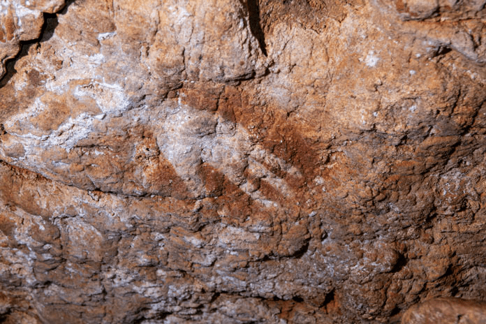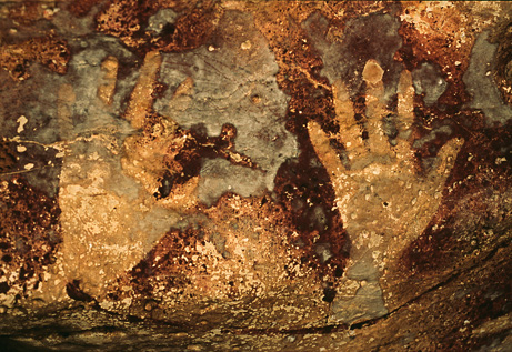 La representación de las manos en negativo es una práctica llamativamente habitual entre los artistas de las cuevas prehistóricas. Tales siluetas fueron realizadas con antiguos métodos de aerografía mediante los cuales el material cromático se aplica, ya sea soplando a través de los huecos medulares de pequeños huesos de animales, o bien espolvoreando pigmentos sobre la mano apoyada en la roca.