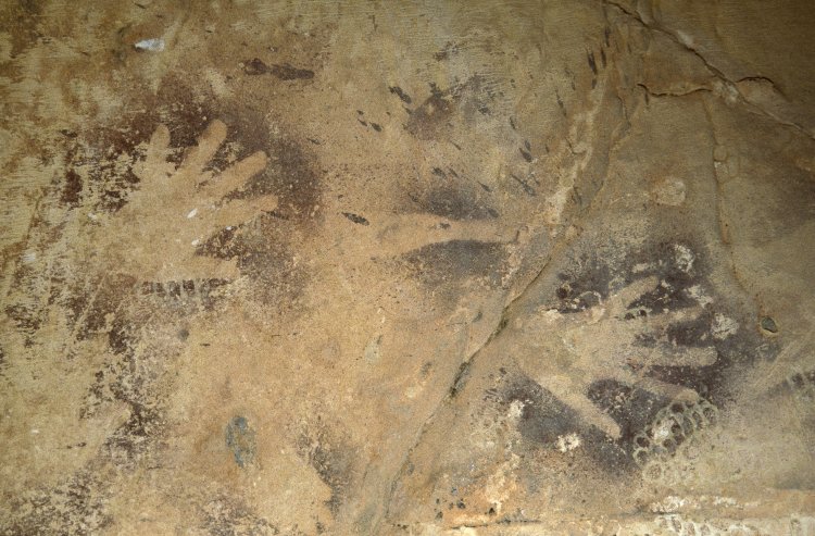 Cueva de las Manos, Santa Cruz, Argentina: La Cueva de las Manos, ubicada en el Cañadón del río Pintura, en la Provincia de Santa Cruz, Argentina, contiene una de las expresiones artísticas más antiguas de los pueblos sudamericanos, con inscripciones fechadas de hace 9.300 años. La Patagonia argentina es una región con profusa actividad de pintura rupestre con el motivo de manos en negativo.