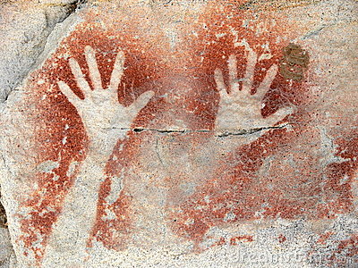 También se pueden hallar las plantillas de manos en negativo por todo el inmenso territorio australiano.