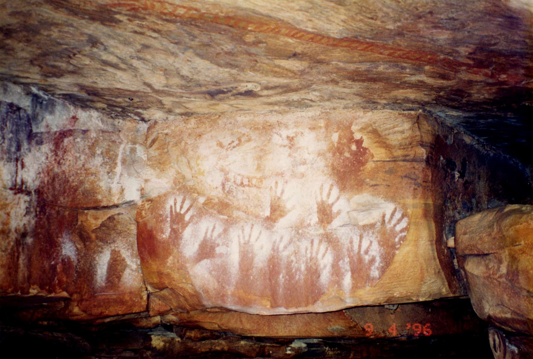 En la región de Kimberley se pueden encontrar gran cantidad de estampas de manos en negativo, como firma de los artistas prehistóricos.