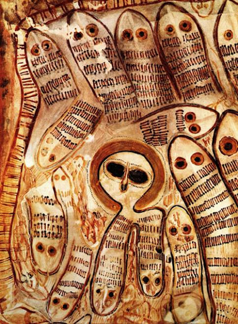 En la mitología de los nativos australianos, los Wandjinas (que significa “cercano al agua”), son seres sobrenaturales, espíritus de la lluvia y las nubes, creadores de la vida en la Tierra. Son seres sabios que trajeron la civilización y la prosperidad a los pueblos de la zona.