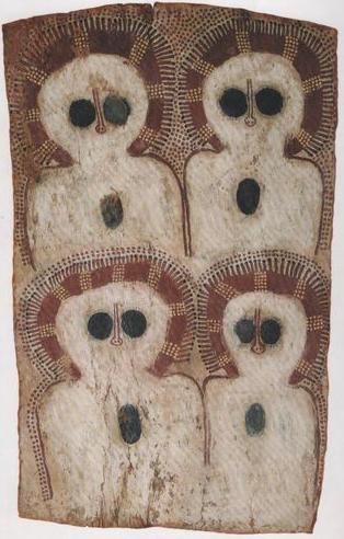 En la siguiente imagen se distingue un hombre barbudo con una mitra sobre su cabeza junto con tres mujeres y un canguro. Tanto el hombre, como las mujeres no se corresponden con ningún tipo de las razas existentes en Australia, sino más bien parecen proceder de Europa o Oriente Próximo.