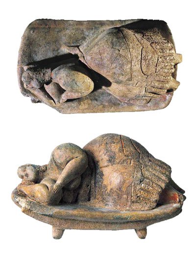 Se cree que es un símbolo de fertilidad, debido a los exagerados miembros de la fémina, que es representada en el proceso de dar a luz mientras está sentada en su trono. La estatuilla es una de las varias iconográficamente similares que se han encontrado en el lugar.