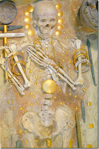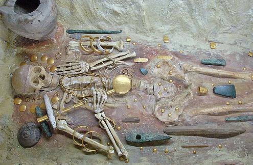 Algunas tumbas no contienen esqueletos sino regalos fúnebres (cenotafios). Lo que es interesante es que los sepulcros simbólicos (vacíos) son los más ricos en artefactos de oro.