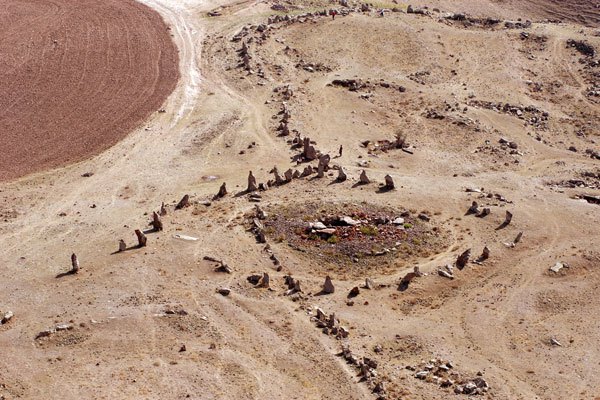 Se las arreglaron para perforar algunas de esas lozas, con vista a ciertos astros, y además se las ingeniaron para alinearlas con bastante precisión hacia el norte y montar el círculo central con bastante similitud a la orientación de Stonehenge. Resulta bastante evidente que no se trata de rocas desperdigadas por la meseta.