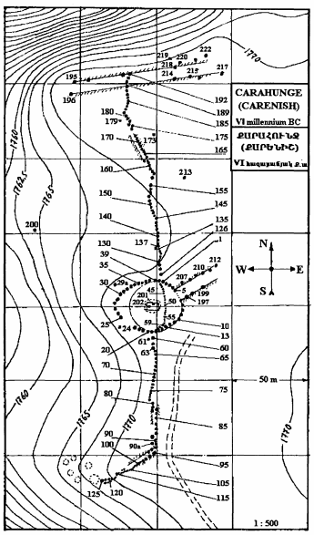Posteriormente, una investigación del físico París Herouni (profesor y científico, miembro de la Academia Nacional de Ciencias de Armenia) durante 1994-2001 condujo a la controvertida conclusión de que Carahunge es el observatorio astronómico más antiguo del mundo.