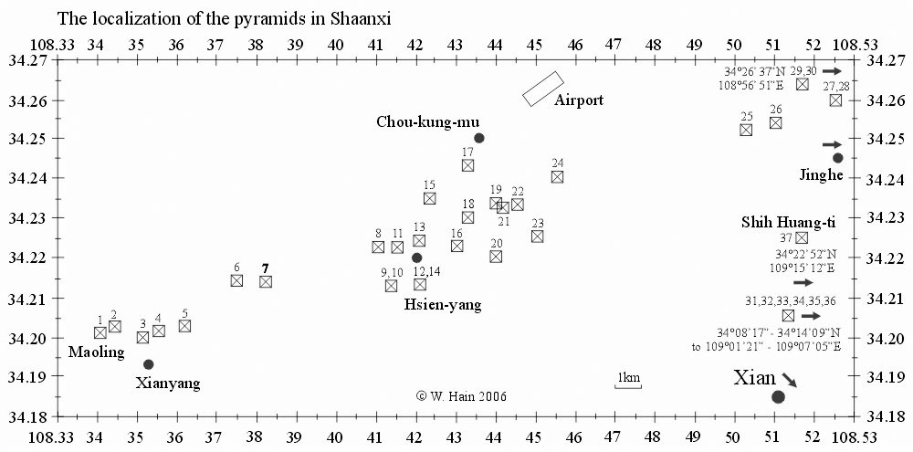 El término «pirámides chinas» se refiere usualmente a las estructuras piramidales ubicadas en un radio de 100 km alrededor de Xi’an, en las planicies de Qin Chuan, en la provincia de Shaanxi, de la China central.