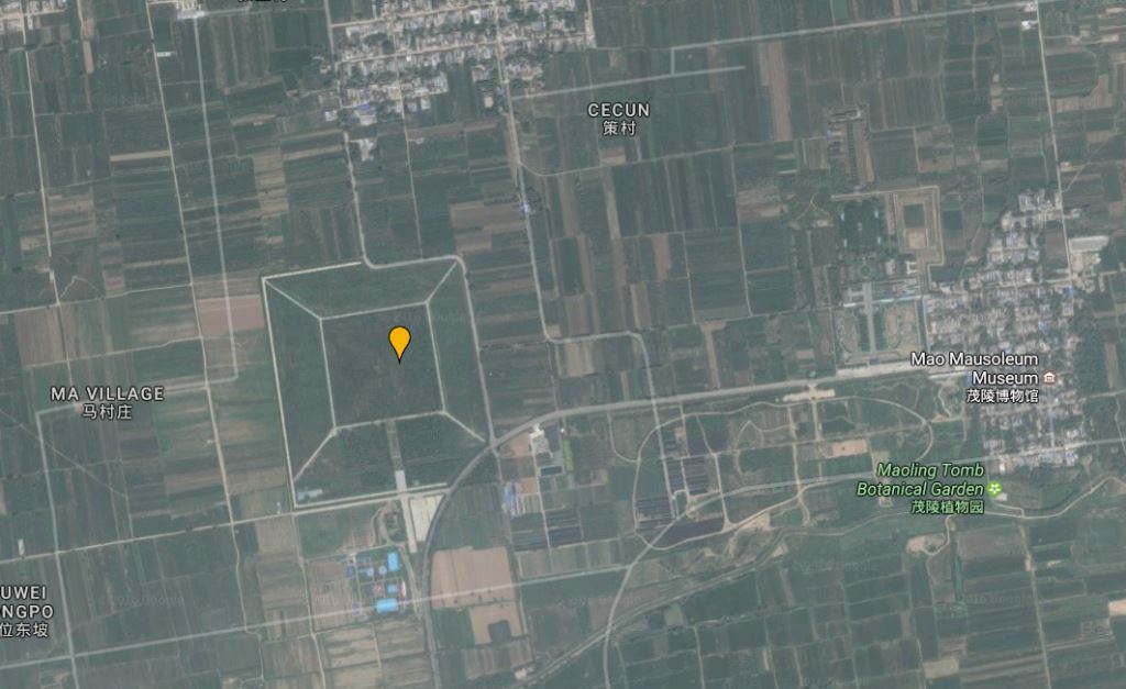 Existe una historia sobre el piloto James Gaussman, de la Fuerza Aérea del Ejército de los Estados Unidos, según la cual durante un vuelo desde India hasta China durante la Segunda Guerra Mundial, este piloto observó una gran pirámide blanca, la cual más tarde se confirmó que se trataba del Mausoleo Maoling del emperador Wu de la dinastía Han, el cual está situado a las afueras de Xi’An.