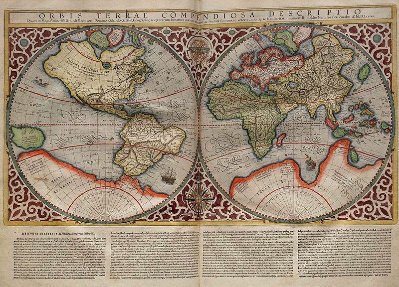 El Planisferio de Mercator fue elaborado en 1587 por Gerard Kremer, conocido por su nombre latinizado Gerardus Mercator (1512-1594), un geógrafo, matemático y cartógrafo flamenco famoso por idear la llamada proyección de Mercator, un sistema de proyección cartográfica conforme, en el que se respetan las formas de los continentes pero no los tamaños. Su mapa también muestra la Terra Australis Ignota.
