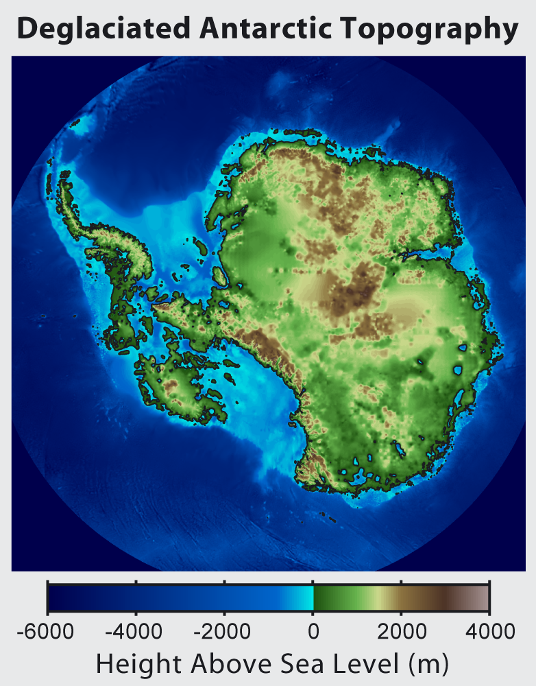 También muestra insólitos detalles de las costas, como fiordos que hace miles de años que se encuentran cubiertos por el hielo. Otro detalle en este sentido es que la hoy llamada península de Palmer no está representada, y precisamente el dato destacable es que esta península no es en realidad tierra firme sino que está formada por hielo.