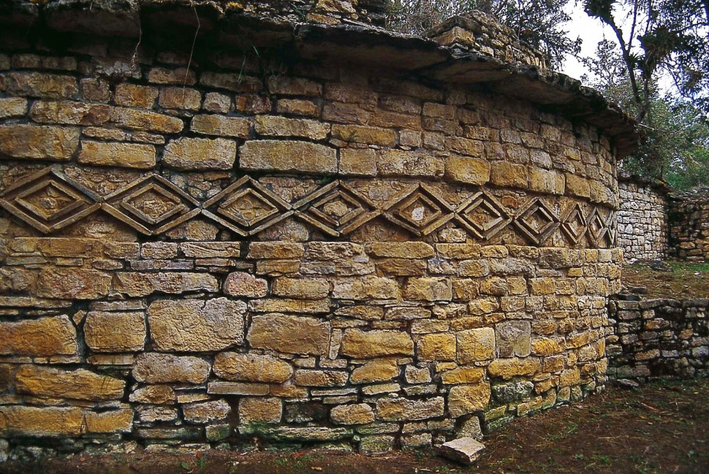 Los Chachapoyas desarrollaron un lenguaje simbólico común con motivos geométricos en forma de triángulos, rombos, serpenteadas y ornamentos cuadrados, que aparecen en los frisos de piedra de las viviendas circulares. Estos símbolos tuvieron un valor étnico y social, y sirvió para demostrar la fuerza de identidad local, mantenida a través del período Inca.