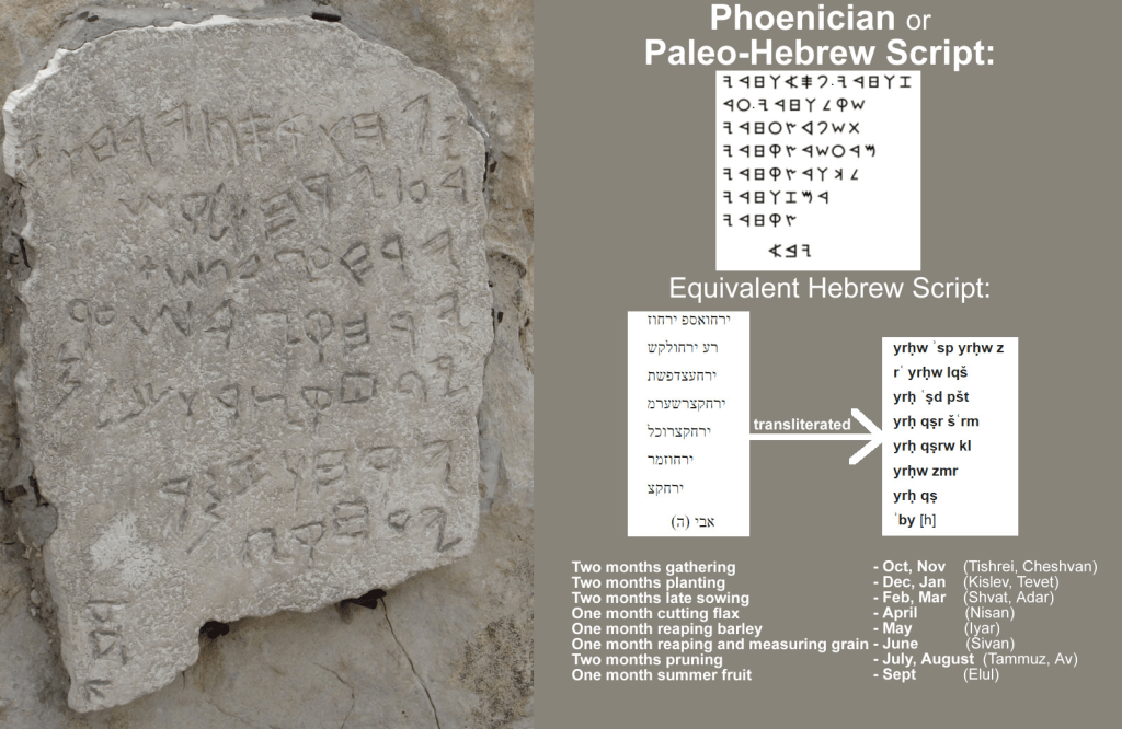 Un hallazgo singular realizado durante las primeras excavaciones de Tel Gezer, entre 1902 y 1907, se trata de una placa de piedra caliza, datada del siglo X AEC. La misma está grabada con lo que se ha denominado el Calendario de Gézer.
