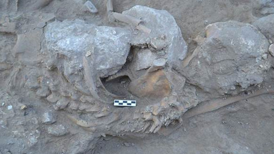 Las excavaciones arqueológicas han hallado, en las ruinas de una gran edificación palaciega, los restos de cuerpos humanos totalmente carbonizados, prueba de la violenta destrucción de la ciudad hace más de 3200 años.