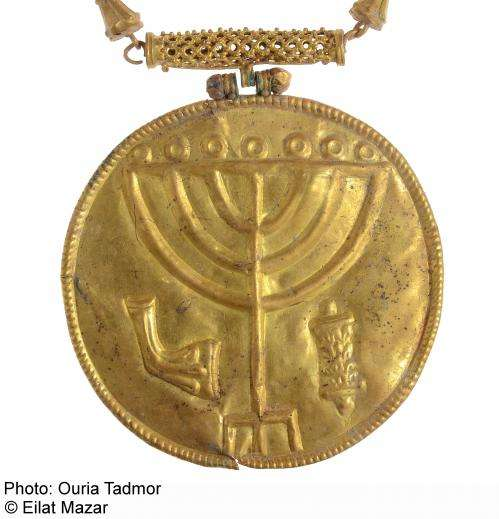 En las excavaciones de verano al pie del Monte del Templo, la arqueóloga de la Universidad Hebrea de Jerusalén, la Dra. Eilat Mazar, hizo un descubrimiento sorprendente: dos paquetes de tesoros que contenían treinta y seis monedas de oro, joyas de oro y plata, y un medallón de oro de 10 cm de diámetro con la Menorá, un Shofar y un rollo de la Torá.