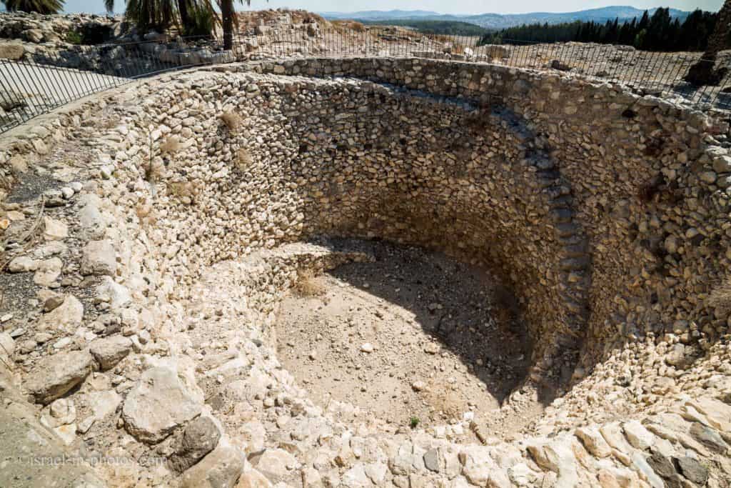 Para asegurar el abastecimiento del agua a la ciudad en tiempos de asedio, se labró en la roca un sistema de aguas subterráneo (un túnel a 25 m. de profundidad y 80 m. de largo) en la parte occidental de la ciudad, que permitía llegar al manantial ubicado a los pies de la montaña por fuera de los muros sin ser visto por el enemigo.