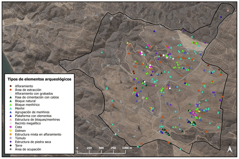 Los hallazgos se han realizado en tres recintos, “posiblemente vinculados al control del ciclo de las estaciones y a la observación de eventos astronómicos”. Se trata de “grandes construcciones abiertas y articuladas en niveles escalonados. En su interior se concentran estructuras de funciones y cronologías diversas: dólmenes, cistas y menhires.