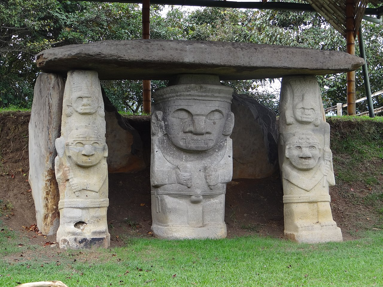 La manifestación peculiar de la cultura de los antiguos pueblos de San Agustín fue la escultura lítica monumental. Más de 300 estatuas han sido halladas en la zona en la que los nativos construyeron un verdadero centro ceremonial para las prácticas funerarias.