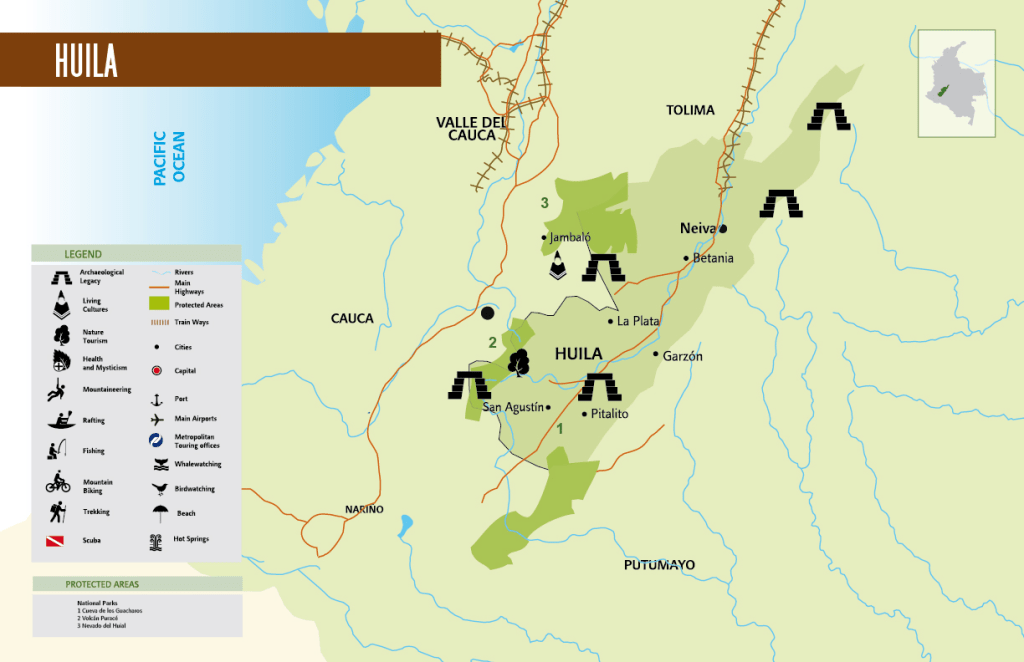 El Parque Arqueológico de San Agustín es considerado la necrópolis de mayor extensión de América pues en este lugar se encuentra uno de los yacimientos aborigen más antiguo, grande e importante del mundo. Fue declarado Patrimonio de la Humanidad por la Unesco en 1995.