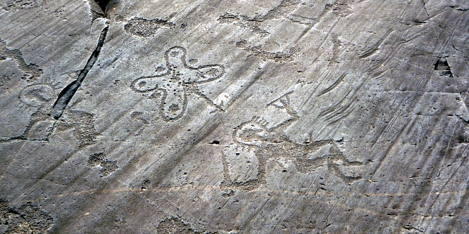 Estos petroglifos se tratan de incisiones realizadas sobre la roca del valle italiano de Val Camonica, que se encuentra en la provincia de Brescia. La Val Camonica (o también Valcamonica, en los dialectos camunios: Al Camònega) es uno de los valles más extensos de los Alpes, cerca de 90 km de largo con 1347 km².