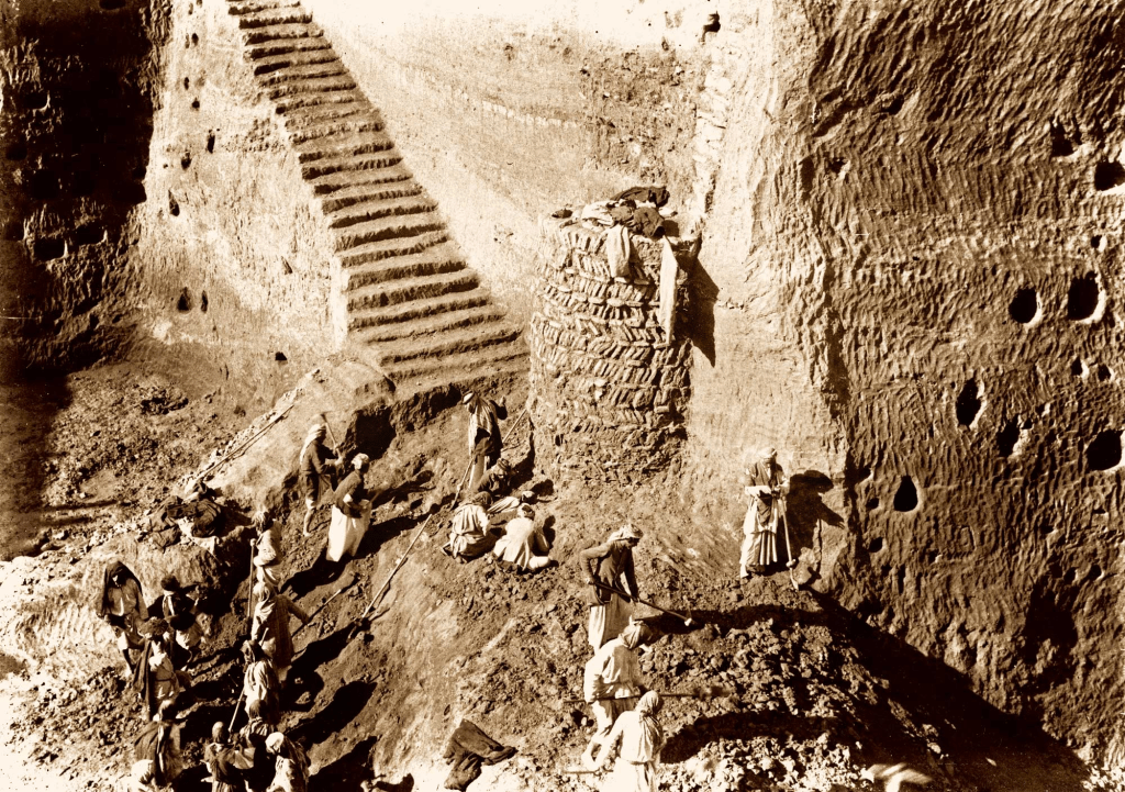 Vista aérea de las excavaciones francesas a finales del siglo XIX y a principios del siglo XX en Girsu (Museo Británico). Imagen