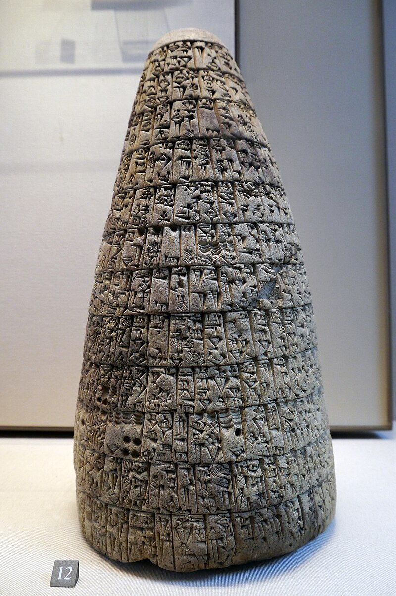 Cilindros de Gudea de arcilla con inscripciones cuneiformes que describen la ampliación de E-ninnu, colecciones del Museo del Louvre. Imagen