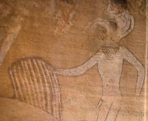 Diseminado por toda la meseta de Tassili n’Ajjer se encuentra uno de los conjuntos pictóricos rupestres más enigmáticos, con sorprendentes figuras que interpelan nuestra racionalidad. En Jabbaren (que en lengua Bereber significa “Los Gigantes”), hay con un conjunto de pinturas en las que se muestran extraños seres que podríamos calificar, como mínimo, de intrigantes: seres antropomorfos de extrañas cabezas que, a veces, incluso parece que flotan en el aire o más aún, que vuelan por sus propios medios.