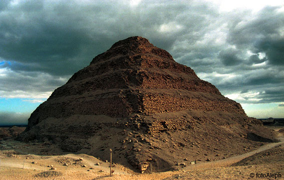 4. Saqqara, el faraón Djoser y el genio de Imhotep: Se trata de la primer gran pirámide de la civilización egipcia, sirviendo de modelo para todas las siguientes ya que fue la primera en utilizar piedras en vez de ladrillos. Mide 140 metros de largo por 118 metros de ancho, con una altura de 60 metros. Sus lados están orientados a los puntos cardinales. En su interior, once pozos de 32 metros de profundidad dan acceso a galerías excavadas en la roca que conducen a una verdadera ciudad-laberinto con galerías, pasillos y habitaciones. La cámara del sarcófago está situada en el centro de la pirámide, a 28 metros de profundidad. El complejo ocupa 15 hectáreas y la muralla que lo rodeaba medía más de 1.500 metros de longitud y 11 metros de altura.