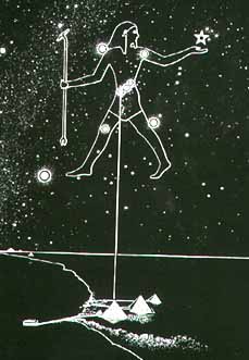 Con ello, las estrellas que componen la constelación de El Cazador, correspondiendo a Al Nitak, Al Nitam y Mintaka, quedarían representadas en Egipto con las tres grandes pirámides de la meseta de Giza, como desarrolló Robert Bauval en su obra El Misterio de Orión.